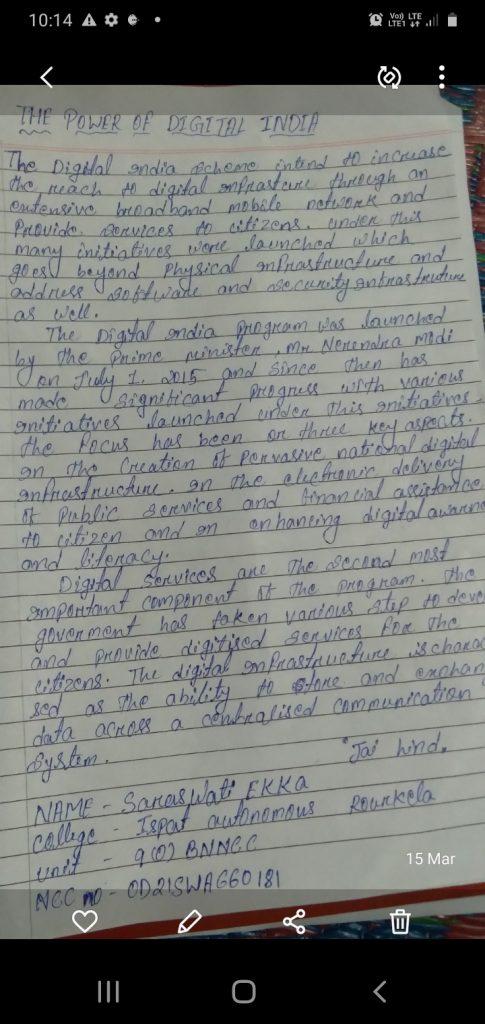Name - Saraswati ekka College - Autonomous college R.K.L Unit - 9 ( O ) BNNCC NCC no - OD21SWA660181