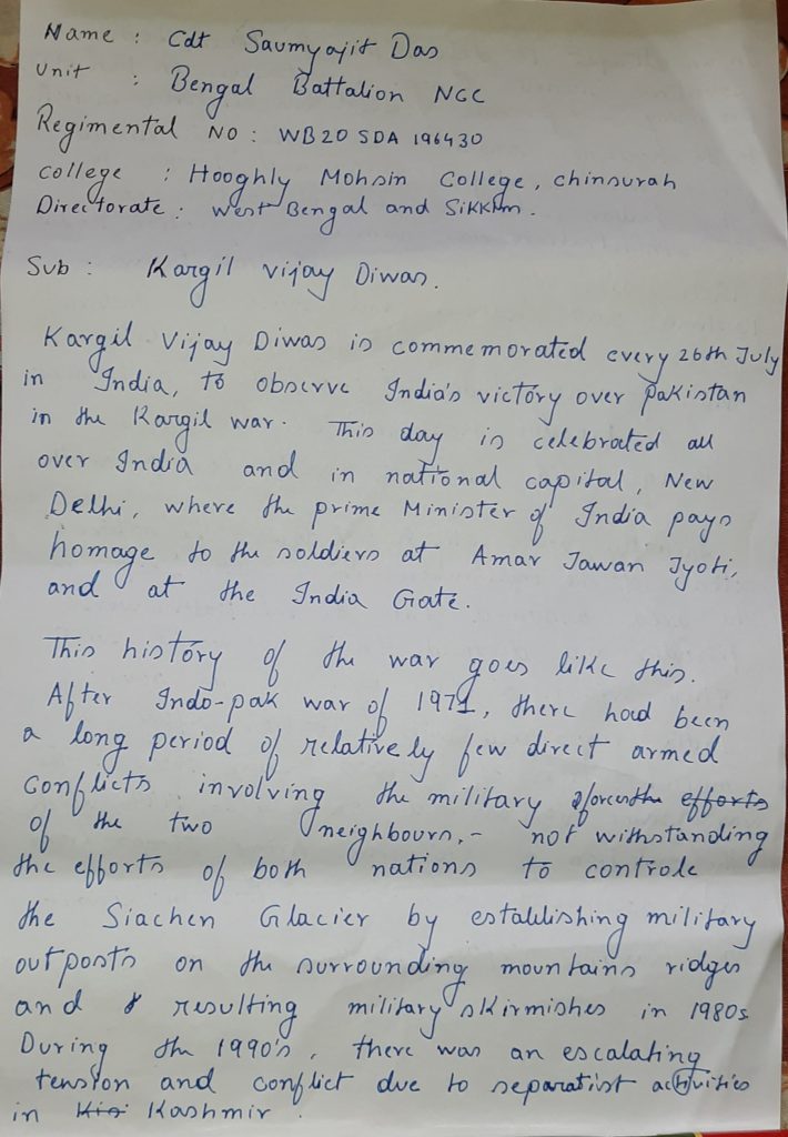 Name : Saumyajit Das Unit : Bengal Battalion Ncc Regimental no : WB20SDA196430 Cllg: Hooghly Mohsin College Directorate : West Bengal and Sikkim .