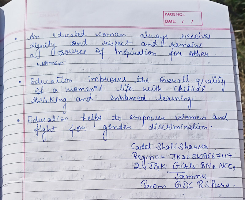 Cadet Shali Sharma Reg.no=JK20SWA667117 2J&K Girls BN NCC, Jammu From GDC RS pura