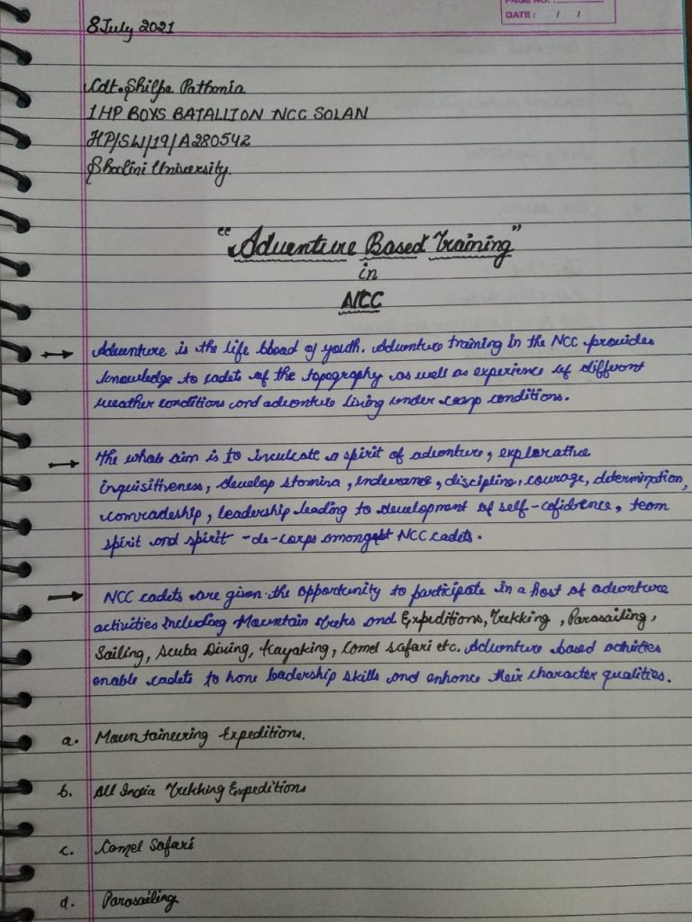I am Cdt.Shilpa Pathania 1HP BOYS BATTALION NCC SOLAN SHOOLINI UNIVERSITY HP/SW/19/A280542 Sharing about the opportunities and adventure based training provided by NCC. GROUP - SHIMLA DIRECTORATE- P,H,H.P. ,C