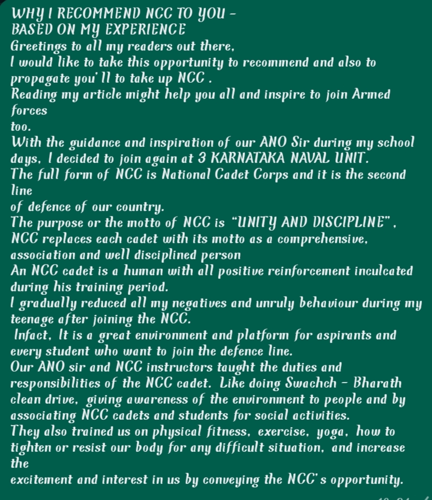 Own experience in NCC