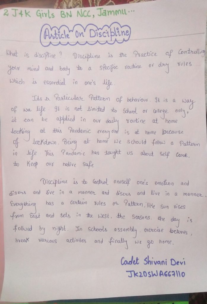 cadet shivani devi JK20SWA667110 2JandK girls bn ncc, jammu gdc rs pura