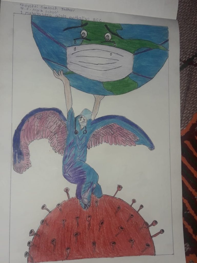 I am Shrushti Santosh Jadhav uploading poster about corona situation "protection from corona".