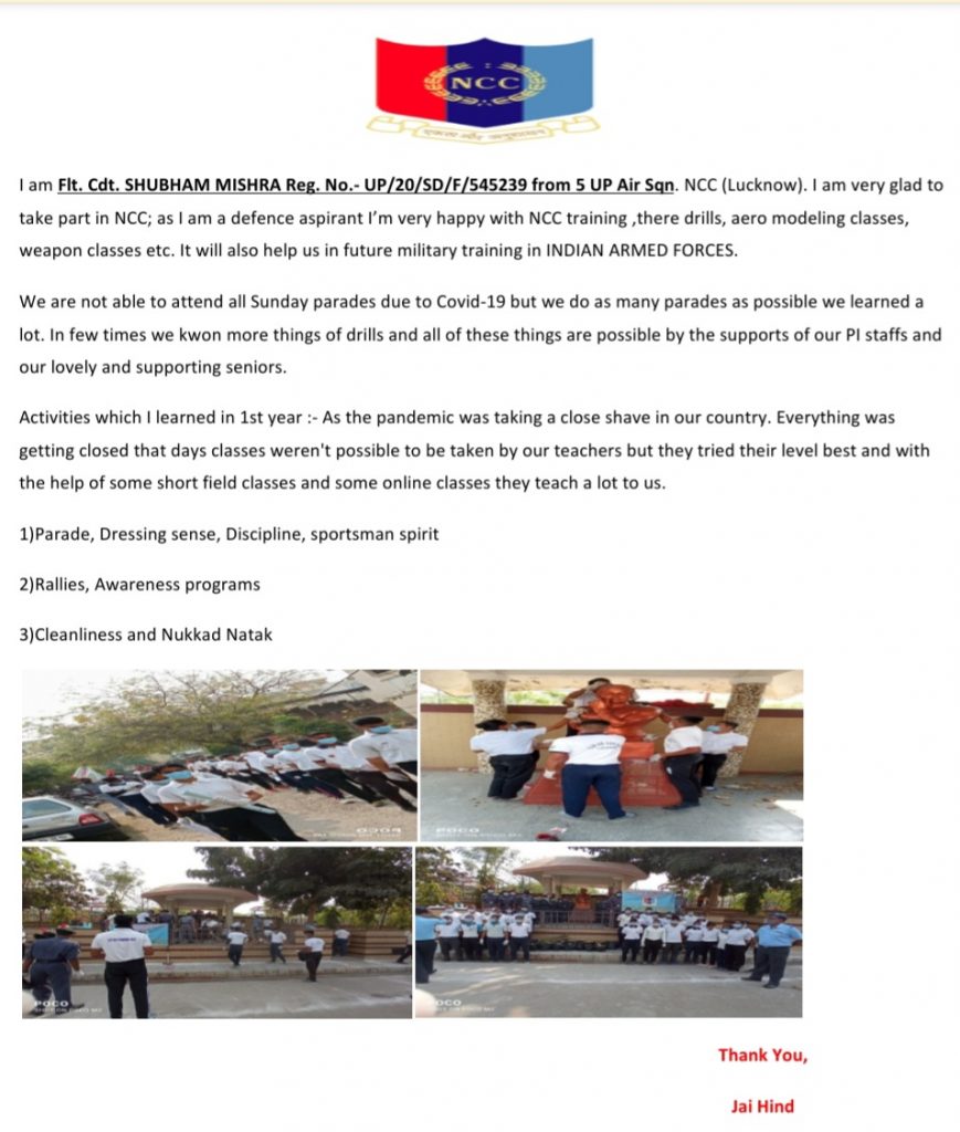 Flt.Cdt Shubham Mishra UP/20/SD/F/545239