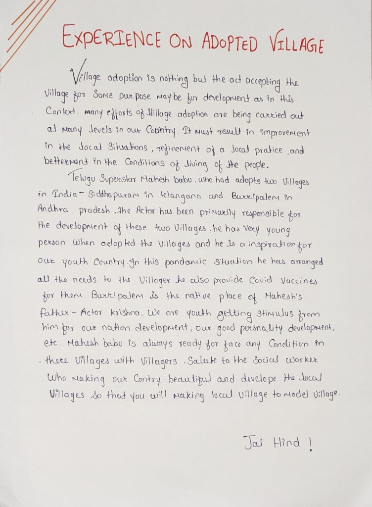 Experience on adopted village