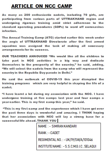 Article about ncc camp
