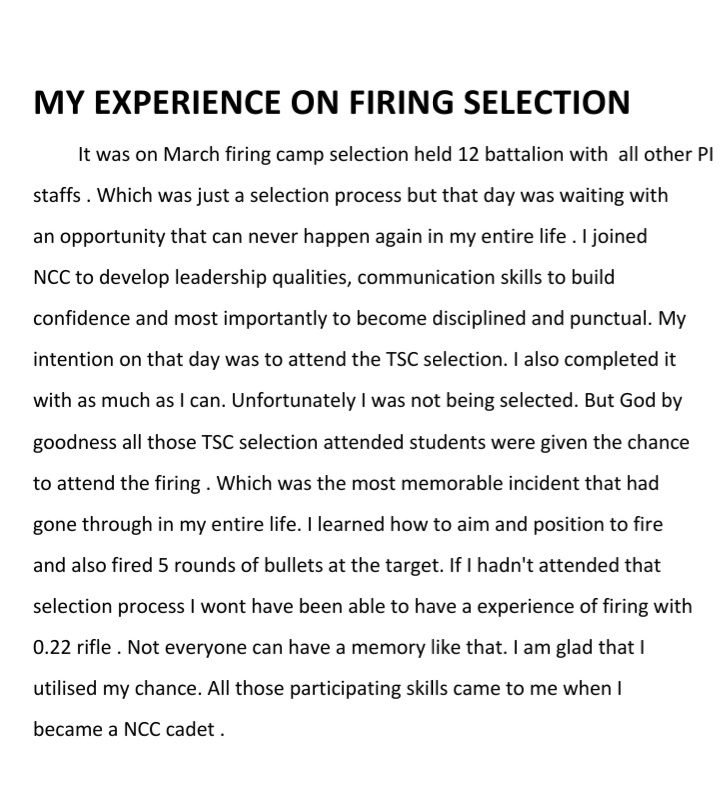 L/CPL.R.SUBHASRI from 12(TN)BN SRI SARADA COLLEGE FOR WOMEN (AUTONOMOUS) SALEM. I have submitted My firing selection experience