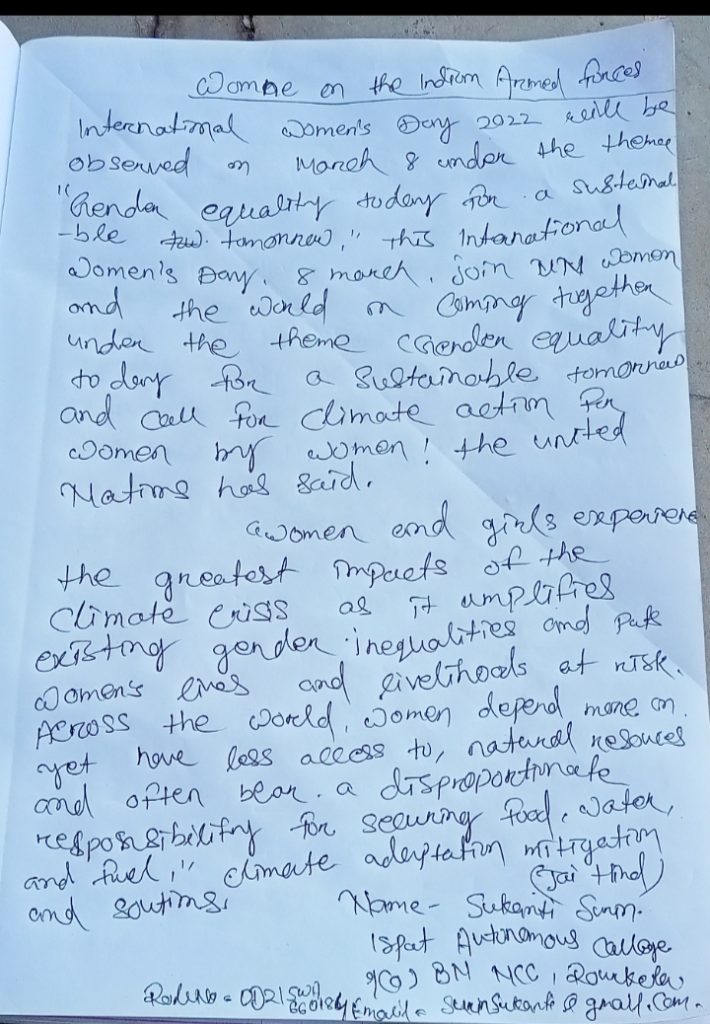 Sukanti Surin Ispat Autonomous College Rourkela 9(o)BN NCC Rourkela surinsukanti@gmail.com OD21SWA660184