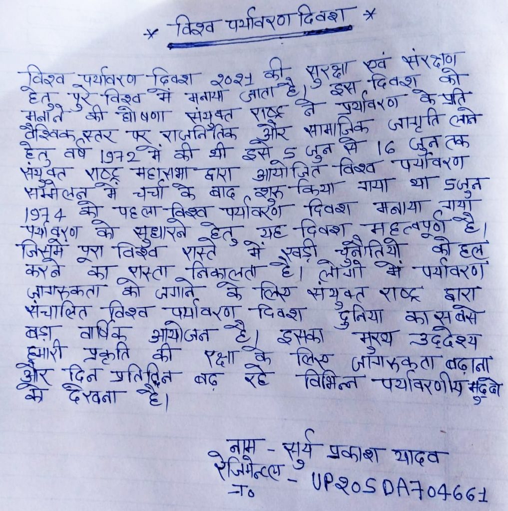 SURYA PRAKASH YADAV REGIMENTAL NO.UP20SDA704661