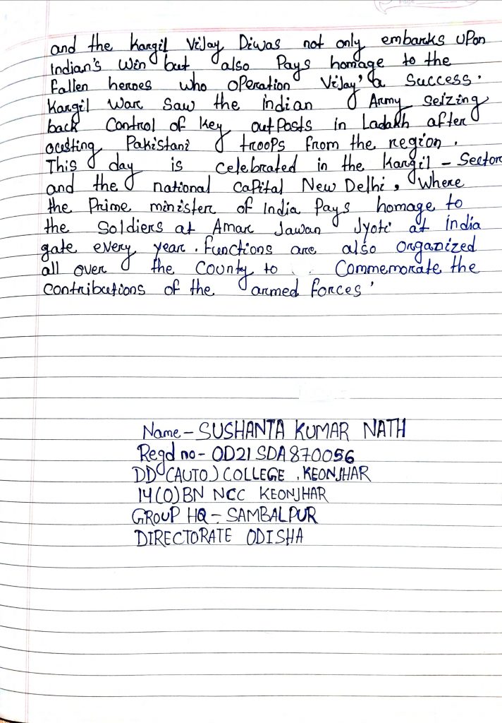 NAME- CDT SUSHANTA KUMAR NATH OD/21/SDA/870056 D. D(AUTO) COLLEGE 14(O) BN NCC KEONJHAR GROUP HQ- SAMBALPUR DIRECTORATE-ODISHA