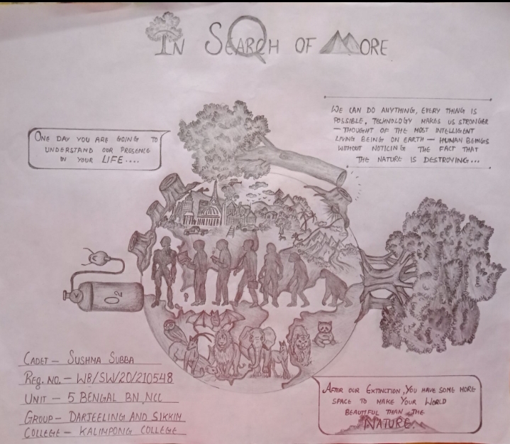 Myself cadet sushma subba from kalimpong college 5 Bengal Battalion NCC West Bengal and Sikkim DIRECTORATE. I have trying to express that we have to protect and take care of our nature .