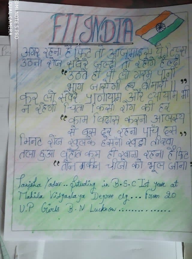 I am cadet Tanisha Yadav studying in BSC ist year at mahila vidyalaya digree clg from 20 UP girl's BN Lucknow