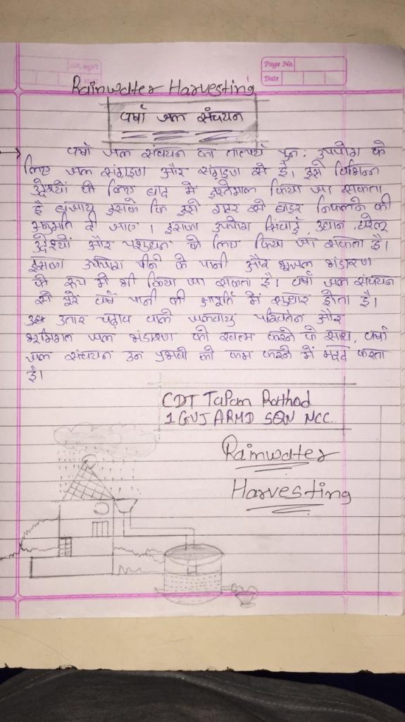 I cadet Tapan Rathod from 1 guj armd sqn ncc ahmedabad have try to show some of importance of rain water harvesting. We have to understand the importance of it.hope you like my work