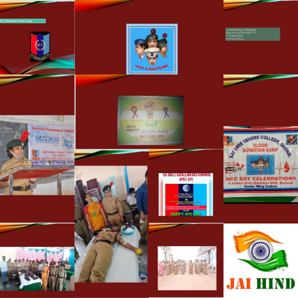 Cadet:T.srideepika Awareness about cancer Day Nd blood donation Nd also a NCC day .