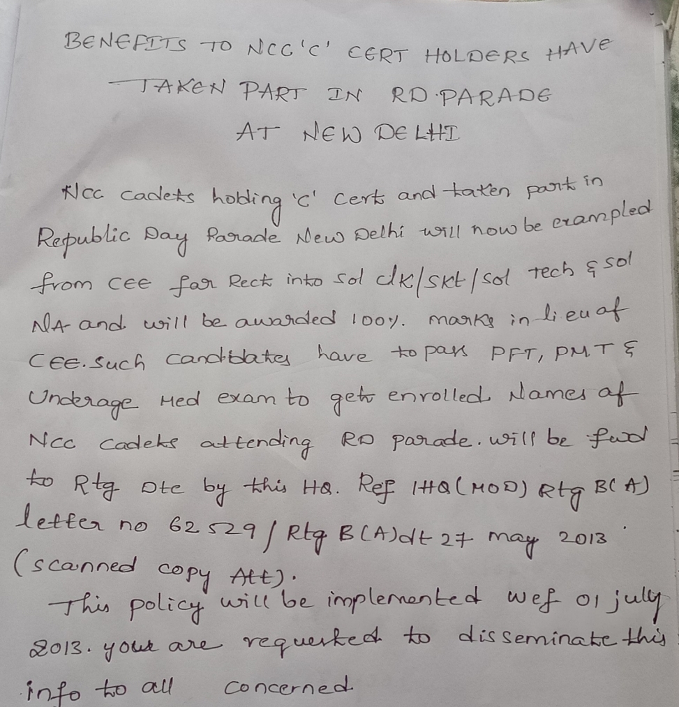 Benefits to NCC \\\\\\\"C\\\\\\\"cert holders in RD parade at New Delhi