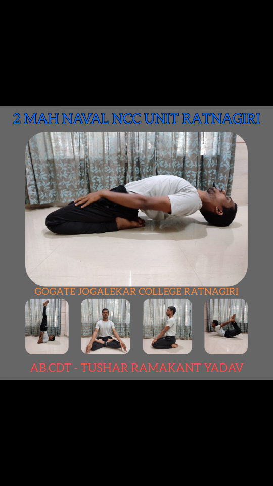 Mera naam Ab. Cdt Tushar Ramakant Yadav hai. Mai 2 MAH NAVAL NCC UNIT ke taraf se hu. Mera regimental no. MH20SDN588343 hai. Mai gogate college ratnagiri mai padhta hu. Maine yog din ke awsar par kuch aasan karke unke photos upload kiye hai dhanyavad