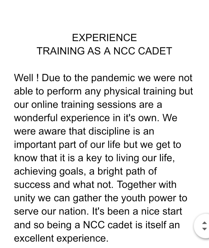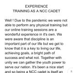Experience of being under a training of NCC cadet shared by Twinkle Sharma, first year cadet DL20SWA210486