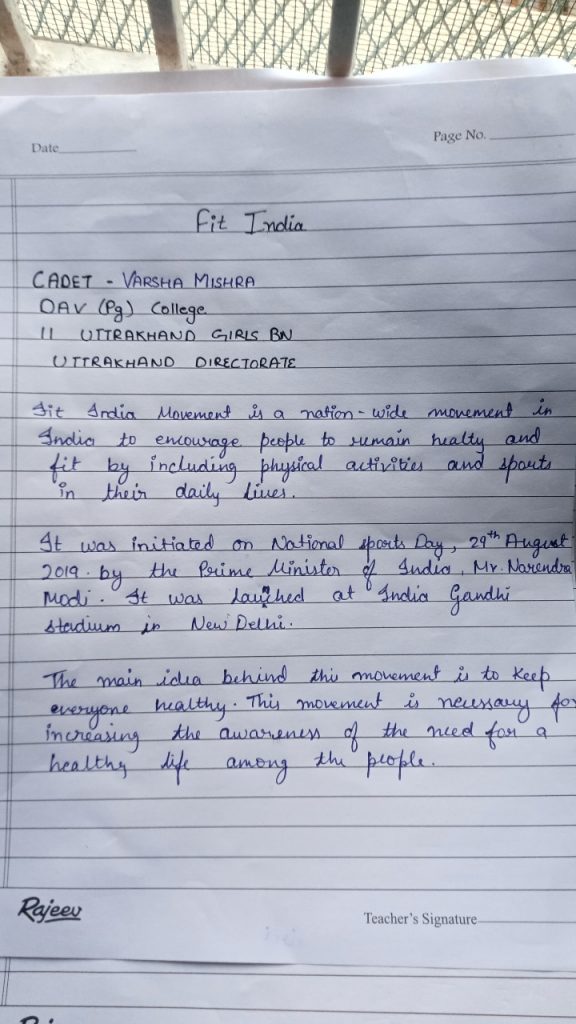 Cadet Varsha Mishra 11Uk Girls BN NCC DAV pg college Uttarakhand directorate DAV