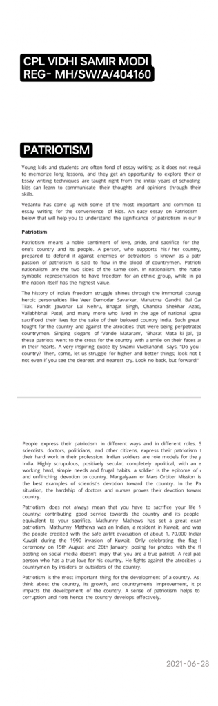 I am VIDHI SAMIR MODI I HAVE WRITTEN ON THE ARTICLE ON PATRIOTISM