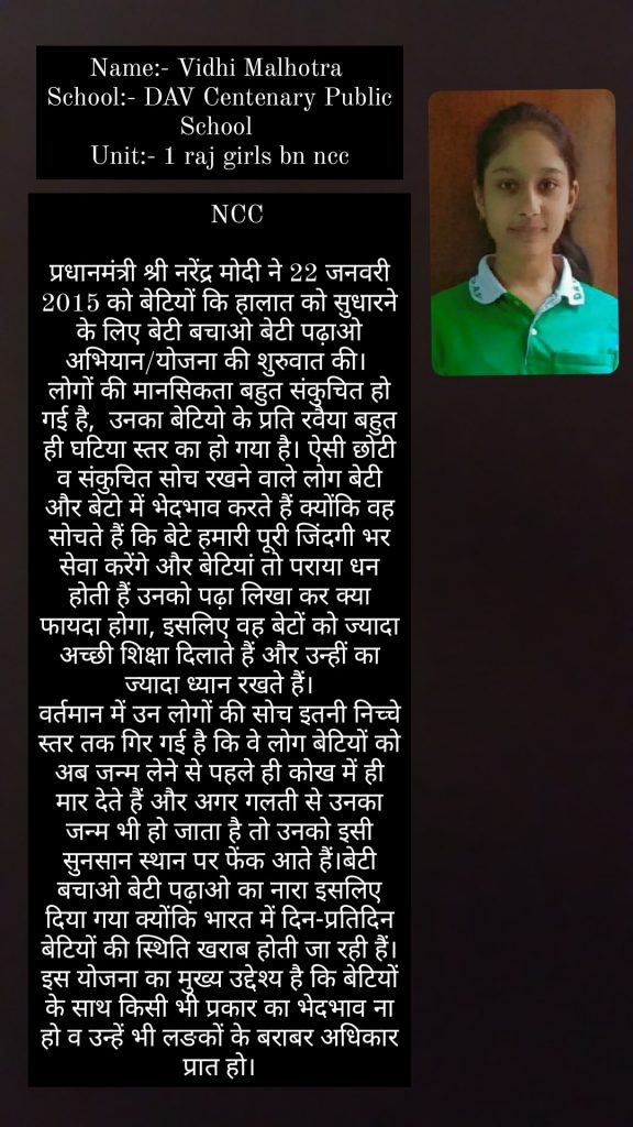 Unit : Raj Girls Bn NCC , Group HQ : NCC Gp HQ Jaipur, Directorate : NCC Dte, Rajasthan