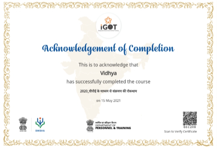 CERTIFICATE :2020 _पीपीई के माध्यम से संक्रमण की रोकथाम