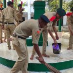 Subhash Chandra BOS ki murti ki Safi Karti huya
