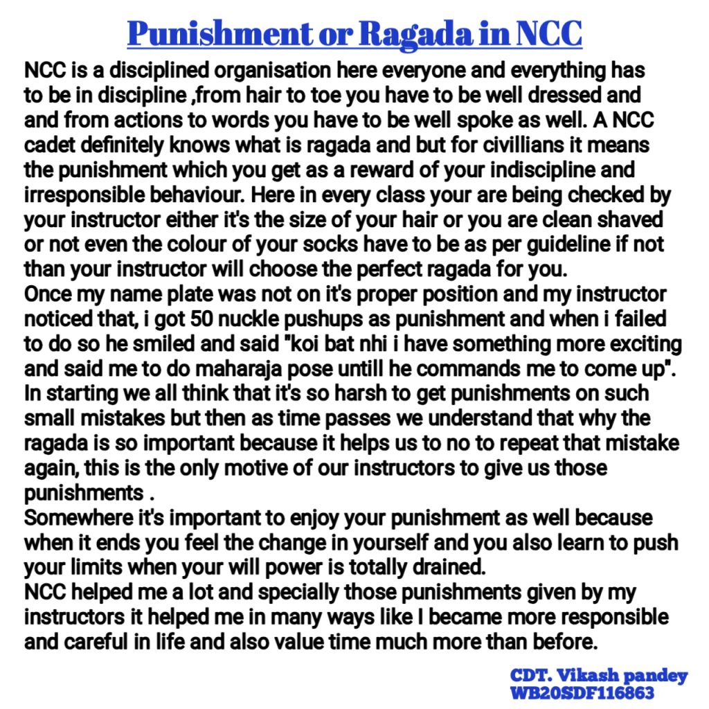 This post is about how Punishments helps a cadet in NCC and how it helps in their life .