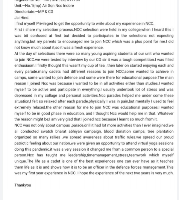 Cadet vinita chawada No 1mp air Squadron ncc indore