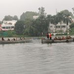 We cadet of 1 mp naval unit ncc bhopal performing boat pulling activity in lower lake of bhopal
