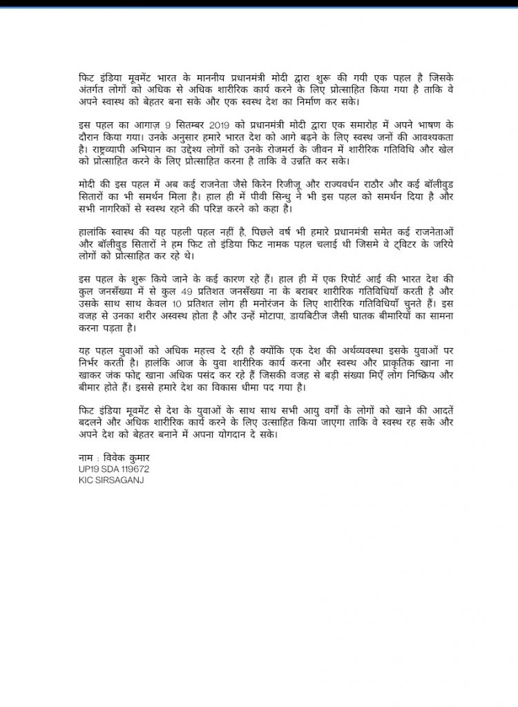 नाम: विवेक कुमार UP19 SDA 119672 KIC SIRSAGANJ 5 UP BN NCC SIKOHABAD