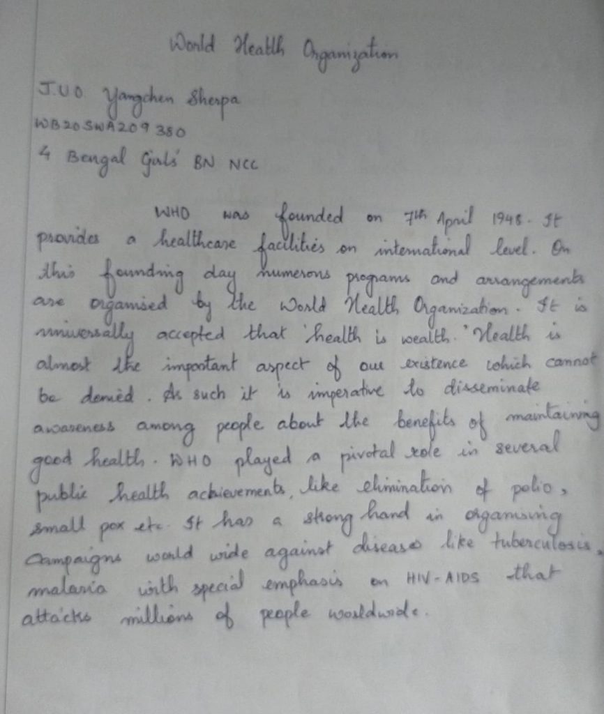 JUO yangchen sherpa Wb20SWA209380 Darjeeling Government college 4bengal girl's BN ncc West Bengal and Sikkim directorate