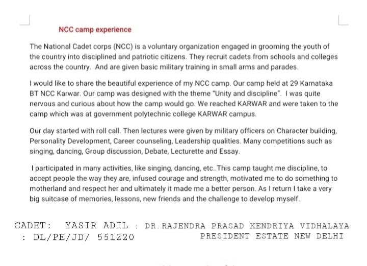 ARTICLE ON NCC CAMP EXPERIENCE.