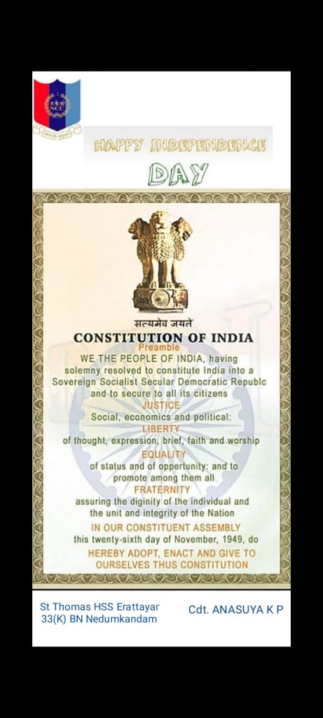 Iam Cdt. Anasuya K P from St Thomas H S S Erattayar 33(K)Bn Nedumkandam