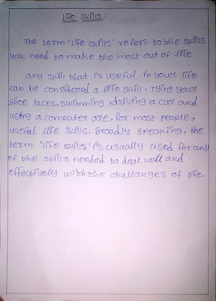Democracy,life skills,road safety,healthy foods.