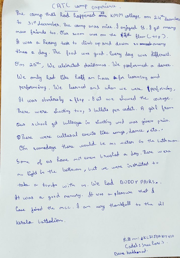Cadet sreehari Roll no. KL21JDA157410 school BAV kakkanad