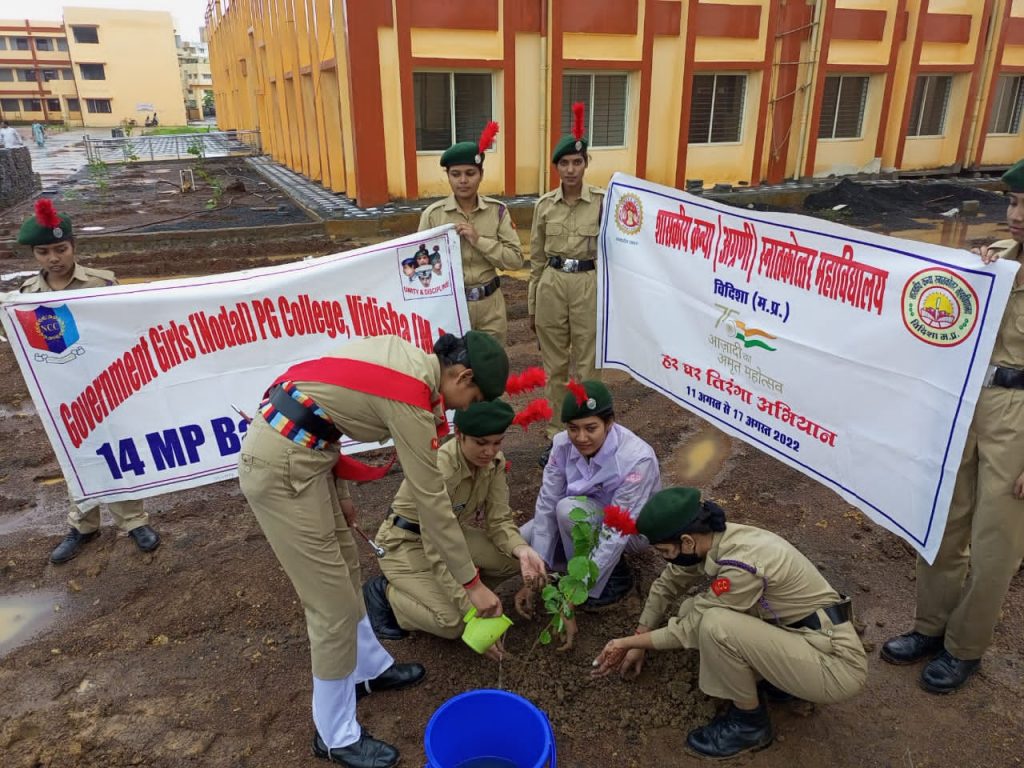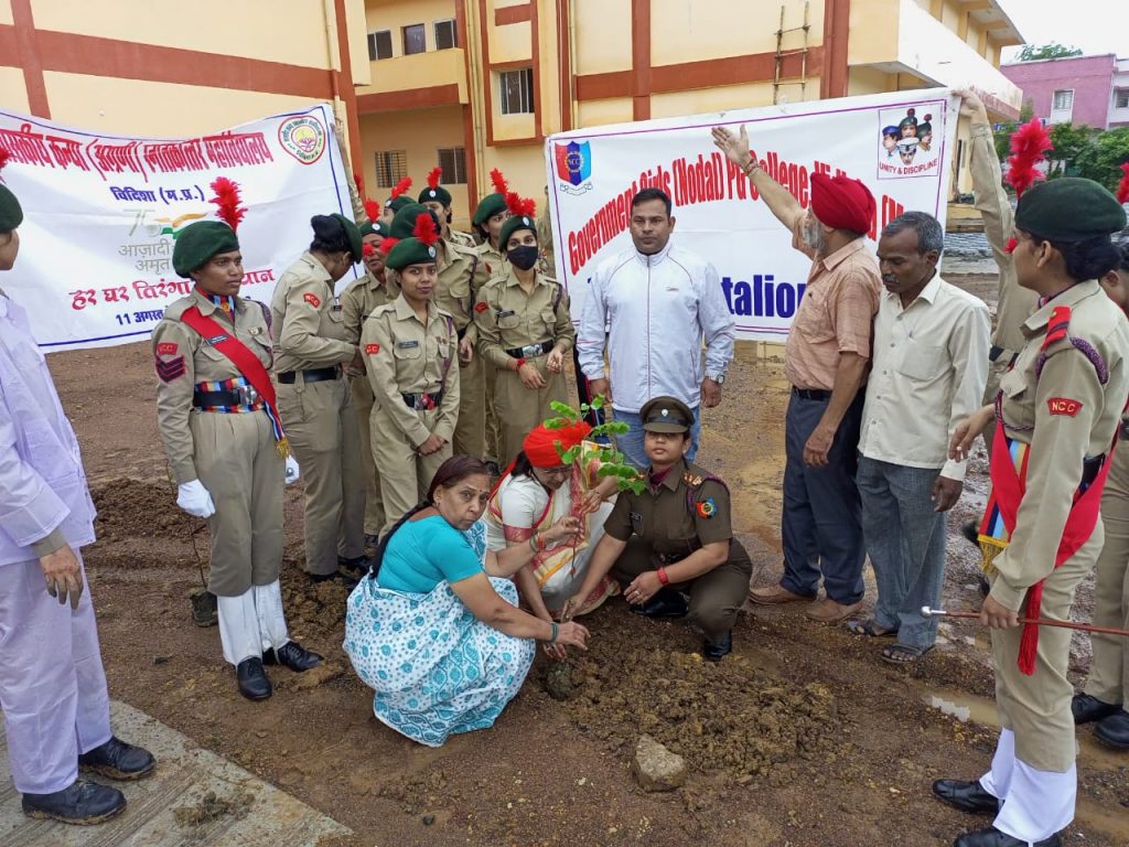 SuoRitikaRaghuwanshi, MP/20/SW/A/115730,14 mp battalion vidisha,Government girl\'s college vidisha , 15thअगस्त के अवसर पर महाविद्यालय में वृक्षारोपण।