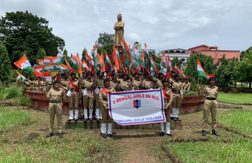 Cadets of 5 BENGAL GIRLS BN NCC celebrating 75 years of independence at Raniganj Girls' College and promoting " Har ghar Tiranga campaign "