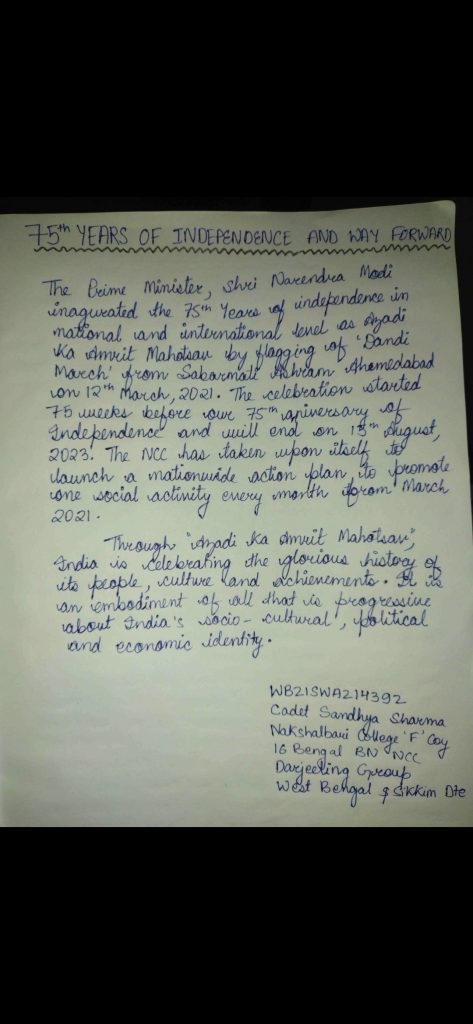 WB21SWA214392 Cadet Sandhya Sharma Nakshalbari College 'F' Coy 16 Bengal BN NCC Darjeeling group WB&SK Dte