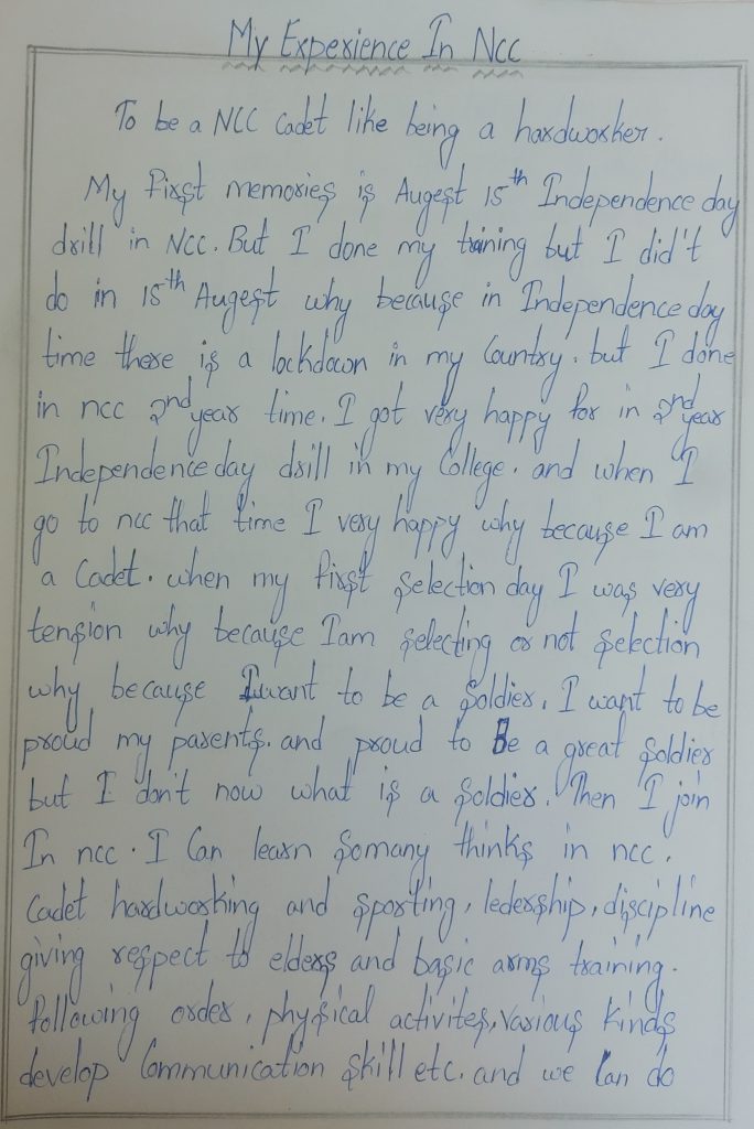 Cadet devaraj Regimental number:TS/2020/SDA/150280 1(T)BN.NCC