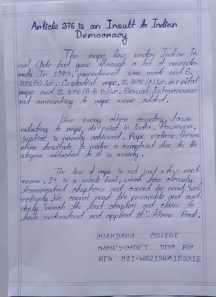 NAME : CDT DOLLY GORAI REG NO. : WB21SWA193408 UNIT : 5 BENGAL GIRLS BN INSTITUTE: MICHAEL MADHUSUDAN MEMORIAL COLLEGE