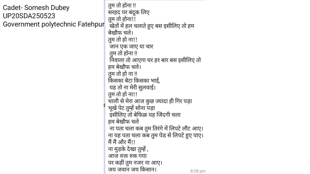 6 mp independent company ncc balaghat gram boda balaghat me logo ko jagruk krte hue