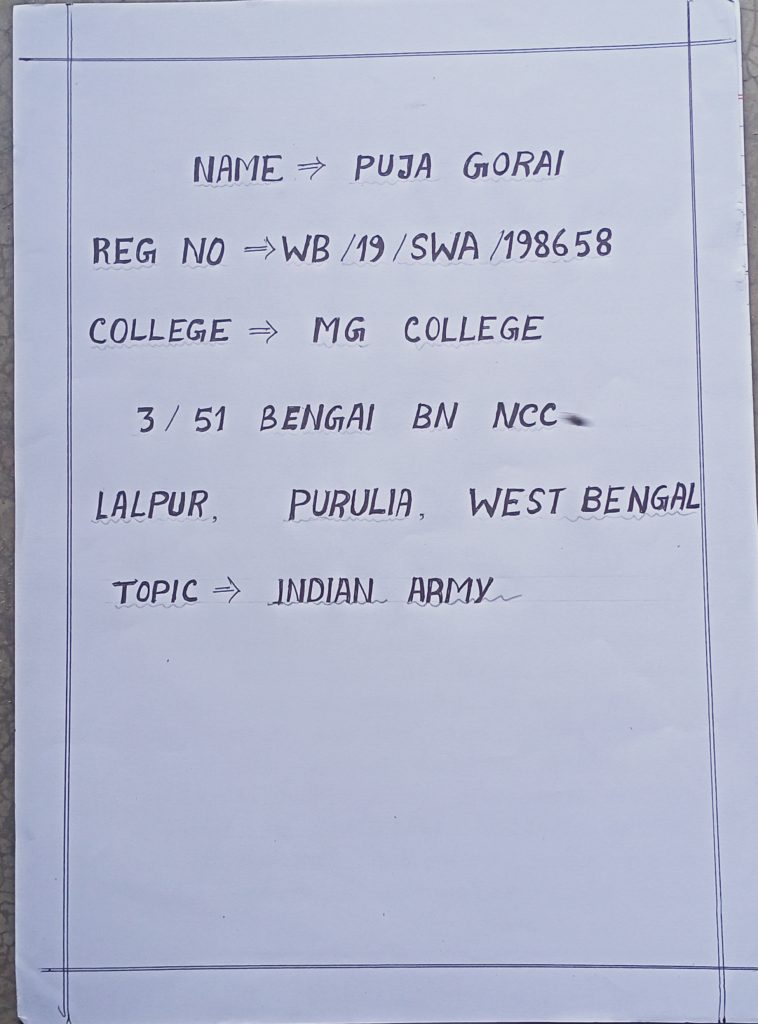 I cadet Jagdeep Singh from GDC Doda 2 jandk independent company Ncc bhadrwah Jammu Kashmir and Ladakh directorate About slogan writing competition