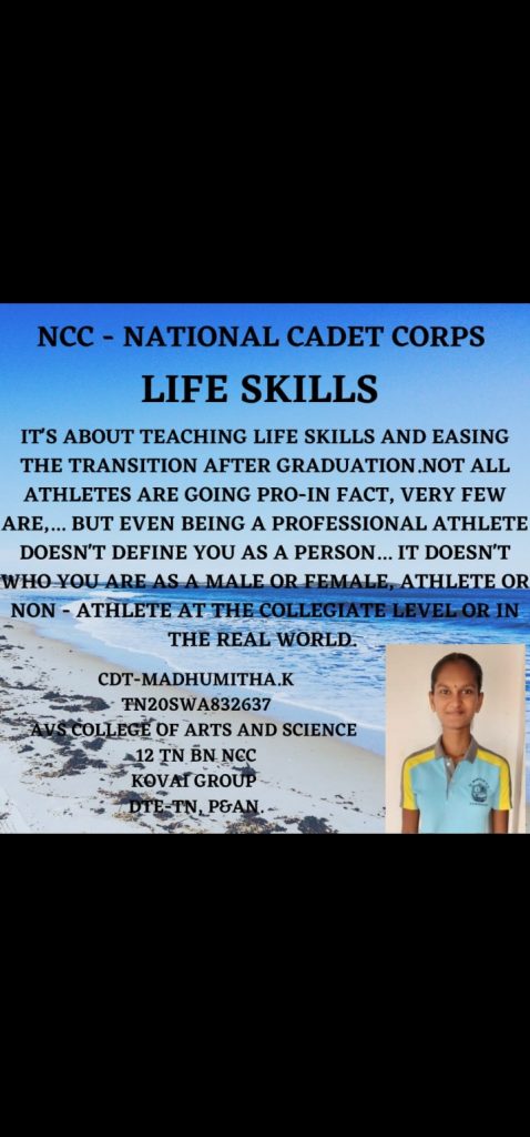 TN20SWA832637 CDT:MADHUMITHA.K AVS COLLEGE OF ARTS AND SCIENCE 12(TN)BN NCC KOVAI GROUP DET:TN,P&AN
