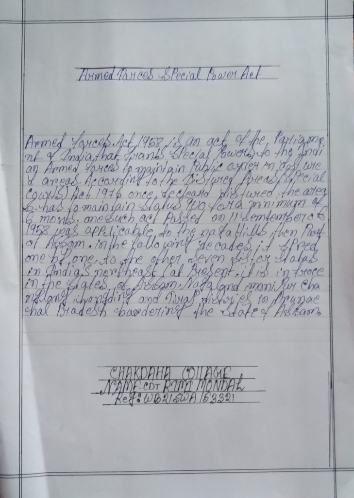 WB21SDA214323 CADET SUMAN SINGHA KGTM'A'COY 16 BENGAL BN NCC