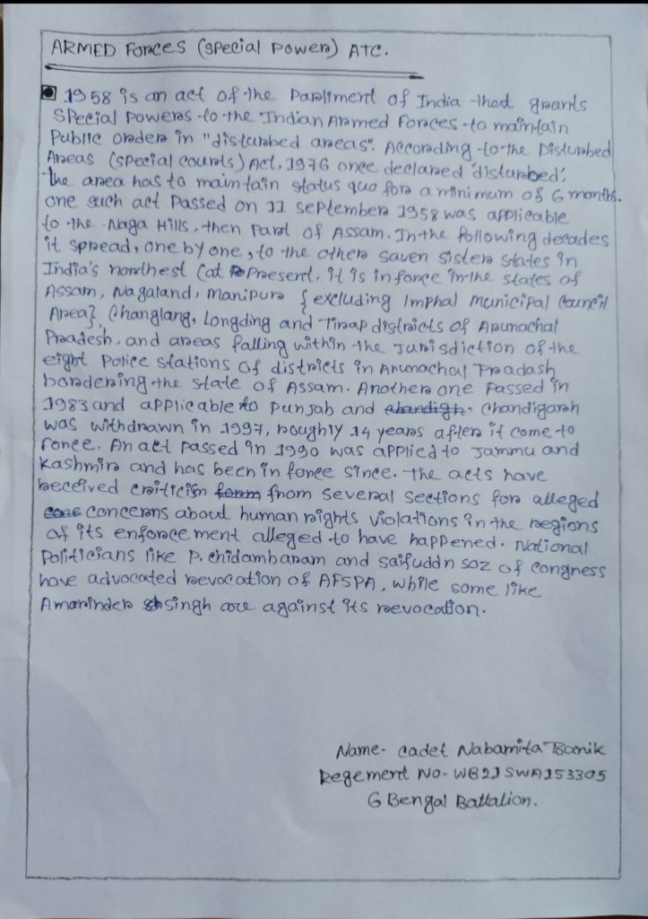 WB21SWA153009; CDT SUMITA BISWAS, DB COLLEGE, UNDER 6 BENGAL BATTALION