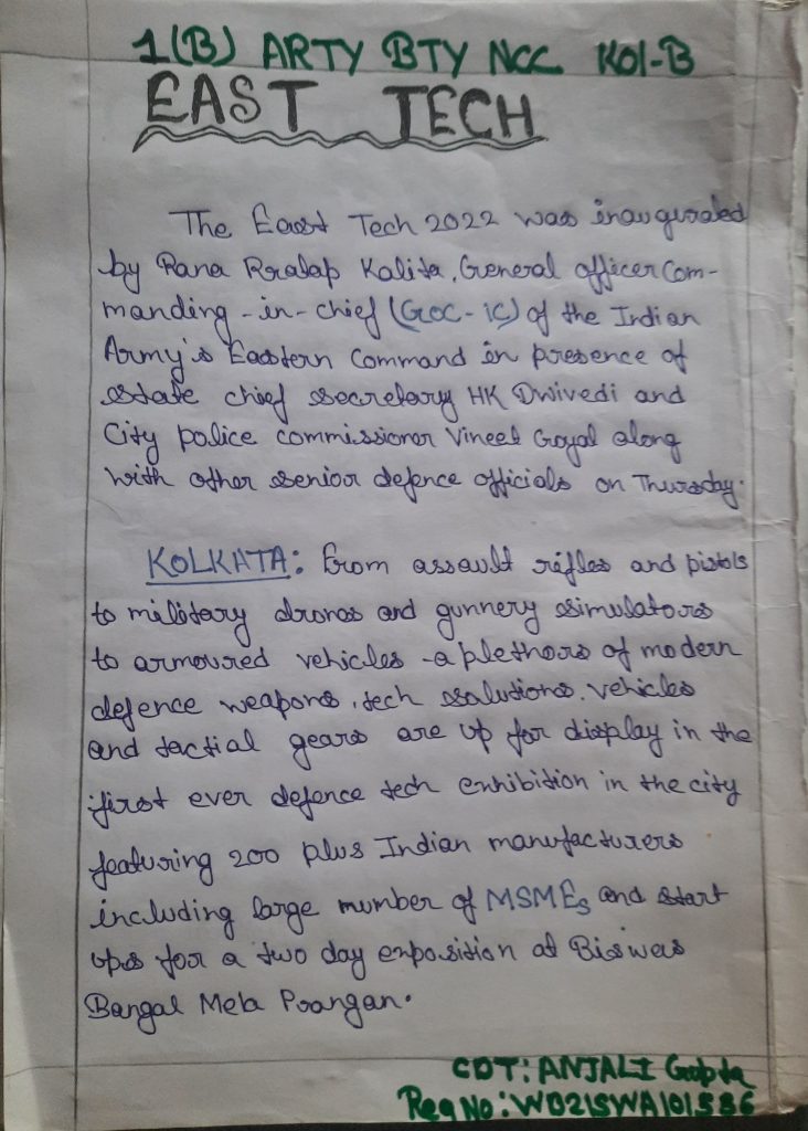 CDT ANJALI GUPTA 1 BENGAL ARTY BTY NCC
