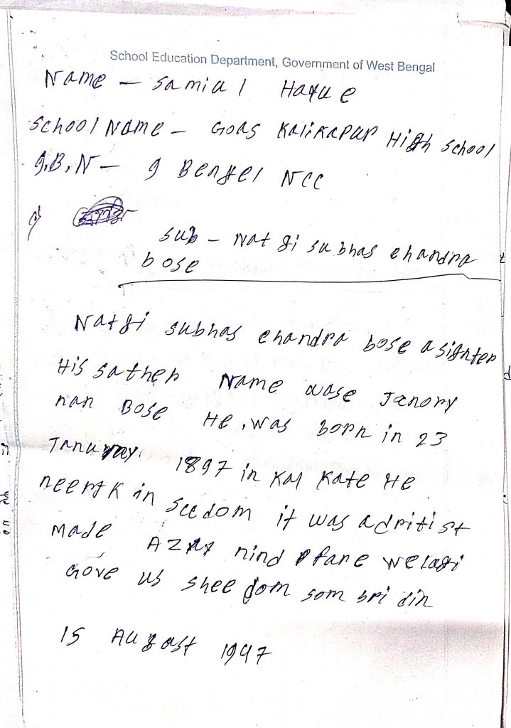 SAMIUL HAQUE GOASKALIKA PUR HIGH SCHOOL 9 BENGAL BN NCC KALYANI GP WB&SIKKIM DTE