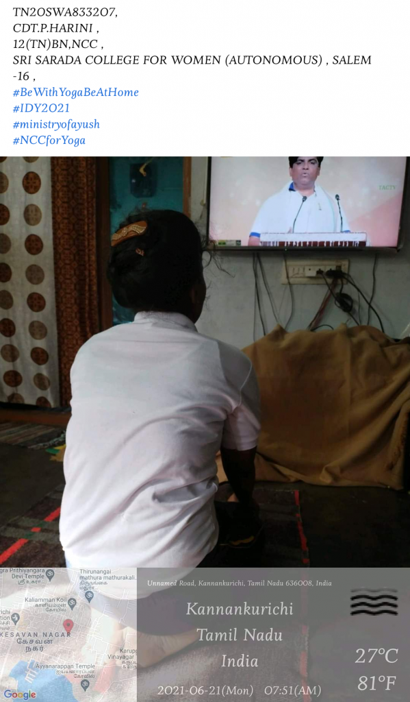 TN20SWA833207 , Cdt.P.Harini , 12(TN)BN ,NCC , Sri Sarada College For Women (Autonomous) , Salem – 16 . yoga day picture