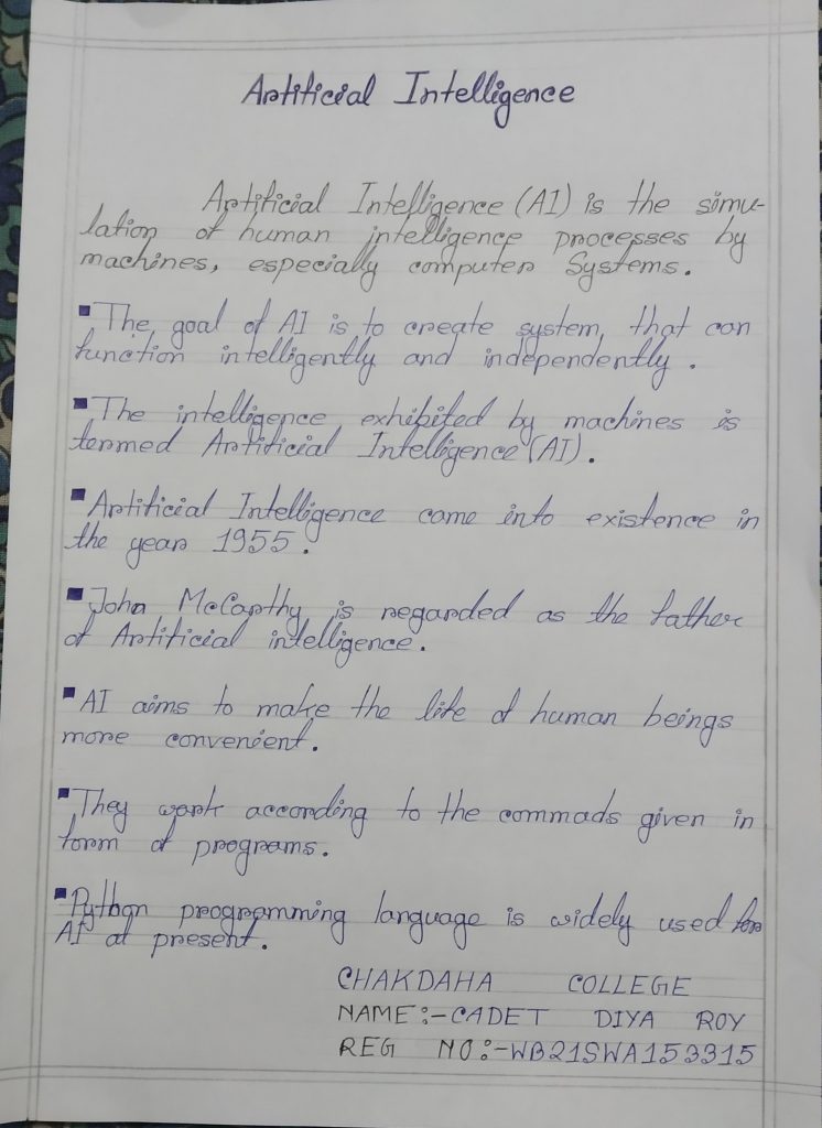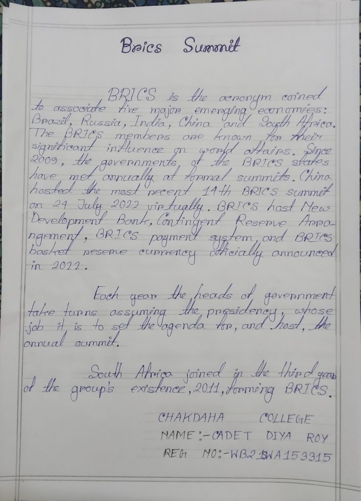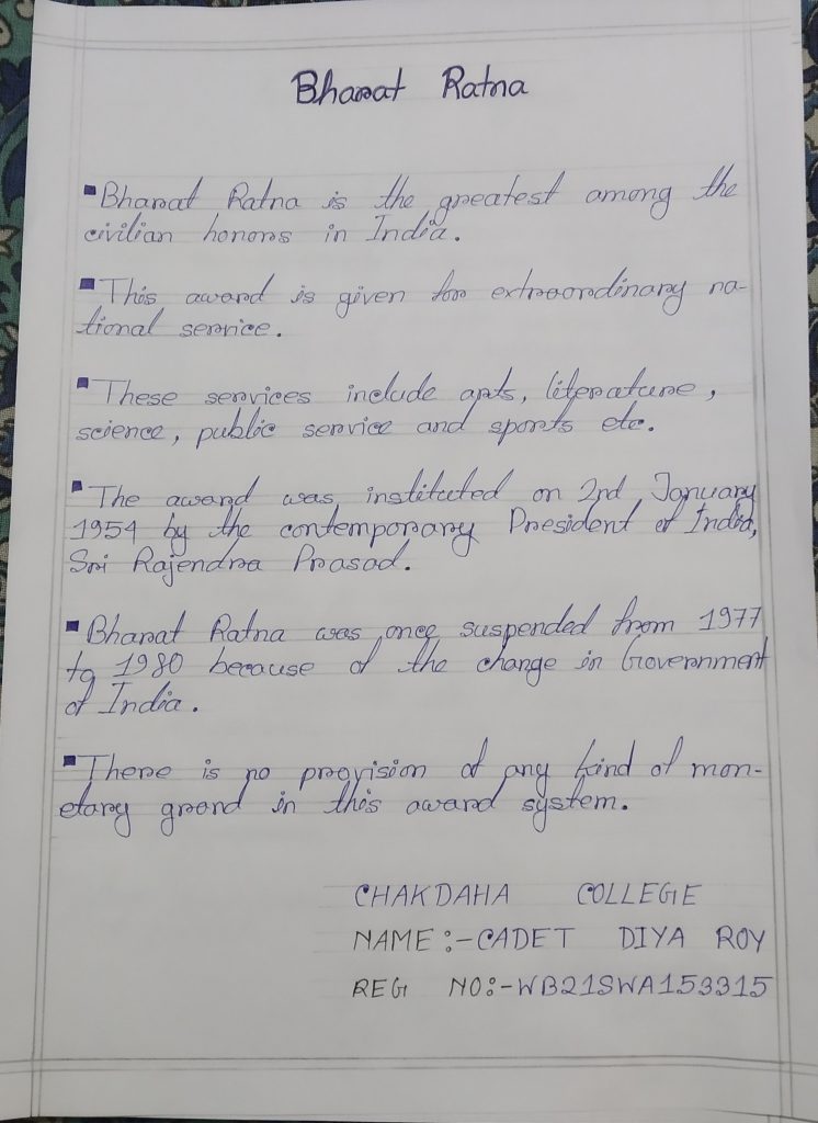 Cadet Yashaswini Pradhan Regimental no. WB21SWA205512 4 Bengal Girls Battalion, NCC North Bengal St. Xavier's College, Rajganj.