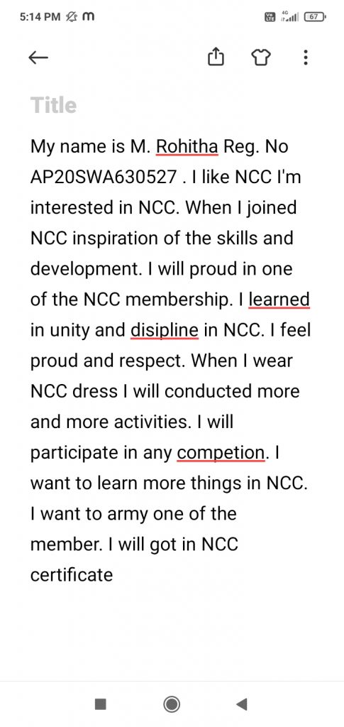 M. Rohitha BA (EHP) T/m KSN Degree college in women's.
